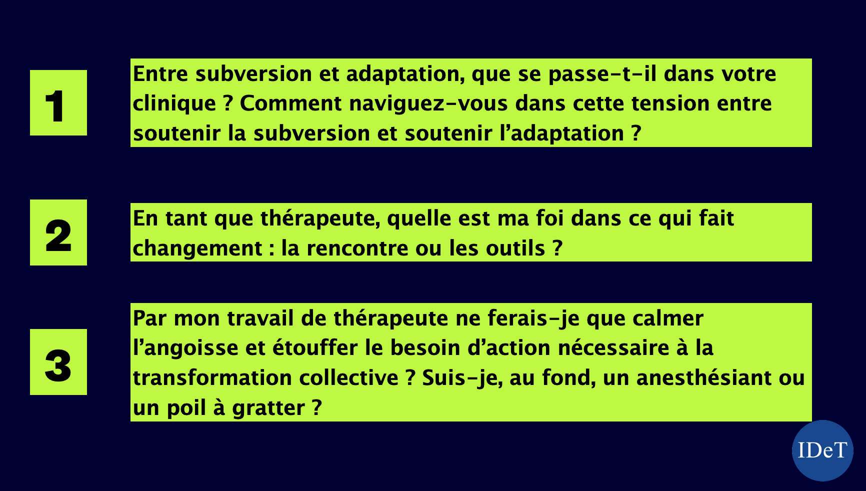 C’est donc choisir de porter le focus sur cet impalpable et pourtant si vital , existentiel et sensible qu’est la relation. Et c’est en lien direct avec notre approche du travail clinique.