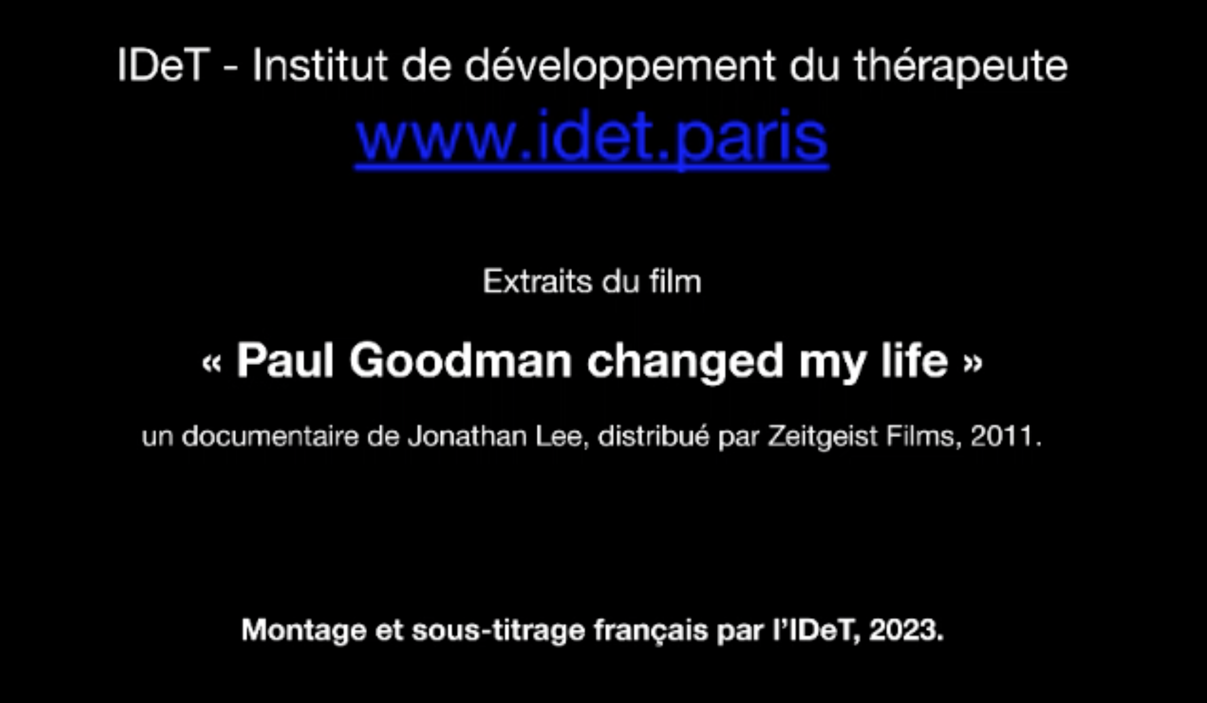 Un montage vidéo d’une demi heure effectué par nos soins, tiré du documentaire de Jonathan Lee (2011) et sous titré par l’IDeT, a donné a sentir la personne qu’était Paul Goodman, avec son culot, sa foi en l’humain et son talent mais aussi avec ses souffrances et ses points aveugles.