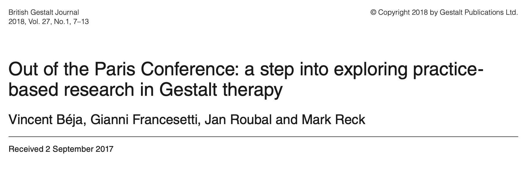 Out of the Paris Conference: a step into exploring practice- based research in Gestalt therapy
